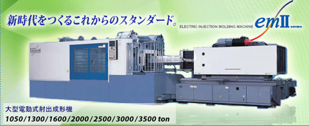 型締力1050tonの「1050 emIII 」、1300tonの「1300emIII 」、1600tonの「1600emII 」、2000tonの「2000emII 」、2500tonの「2500emII 」、3000tonの「3000emII 」、3500tonの「3500emII 」を取り揃えております。
